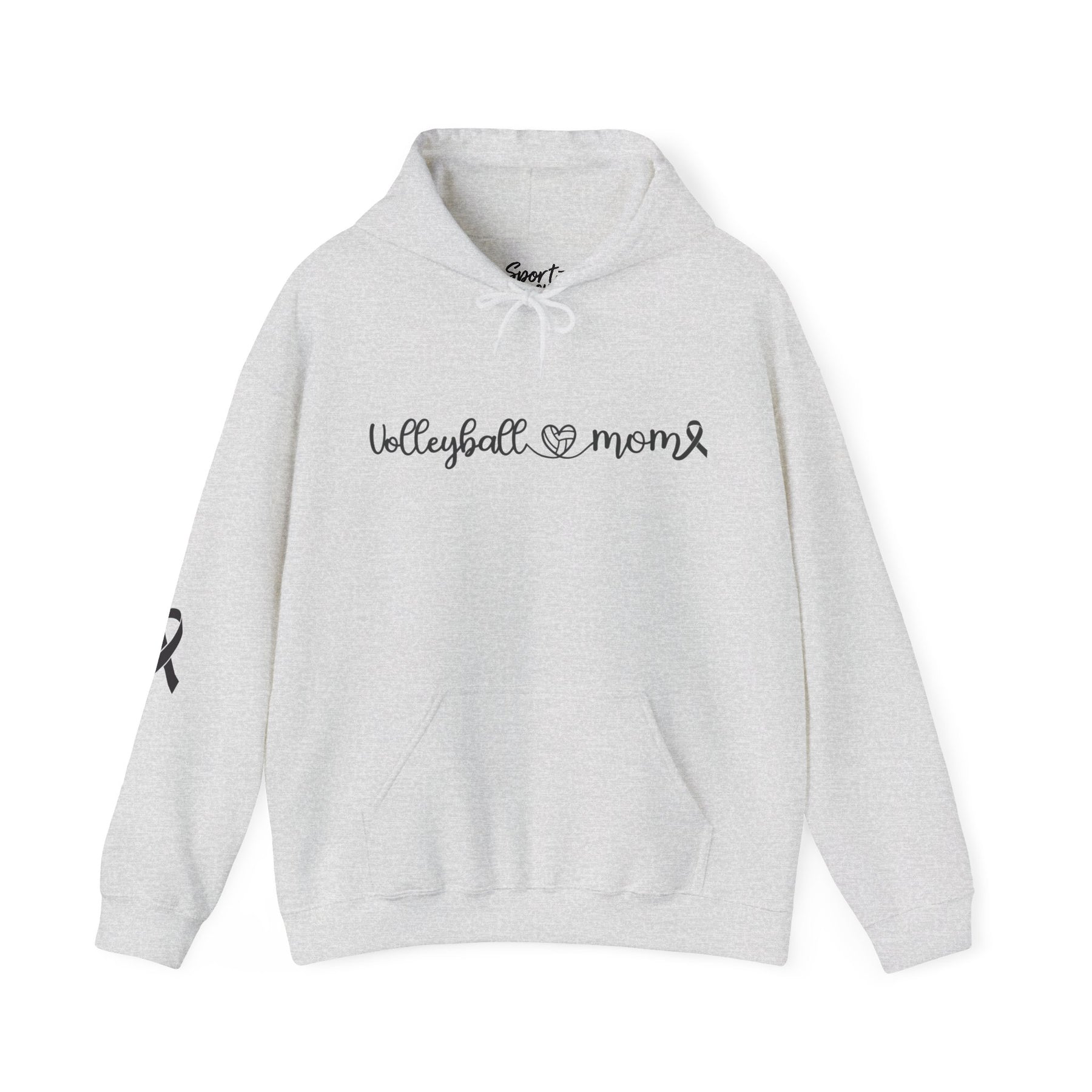 Cancer Collection Pick Your Sport Mom Ribbon & Heart Adult Unisex Hooded Sweatshirt w/Ribbon on Sleeve
